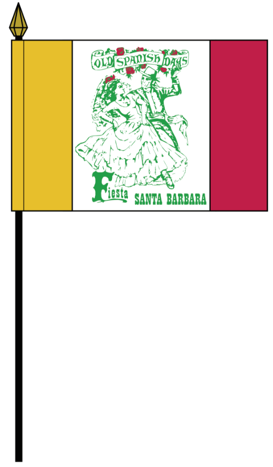 Your order will come with six (6) individual flags. Each are 4 inches by 6 inches on a 10 inch black “flag pole” adorned with a gold spear top featuring the Fiesta dancers.